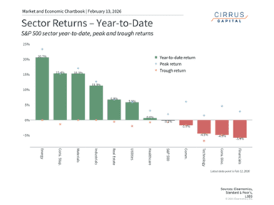 What feels clear is that we are early in a multi-year transformation. Businesses are experimenting. Workers are adapting. Entire sectors are trying to understand what this technology means for them. Over time, the picture will become clearer. But progress rarely moves in a straight line. Year-to-date sector returns highlight this. Technology companies have dominated headlines, but even with the AI advancement, we’re seeing rotational shifts into non-tech sectors
