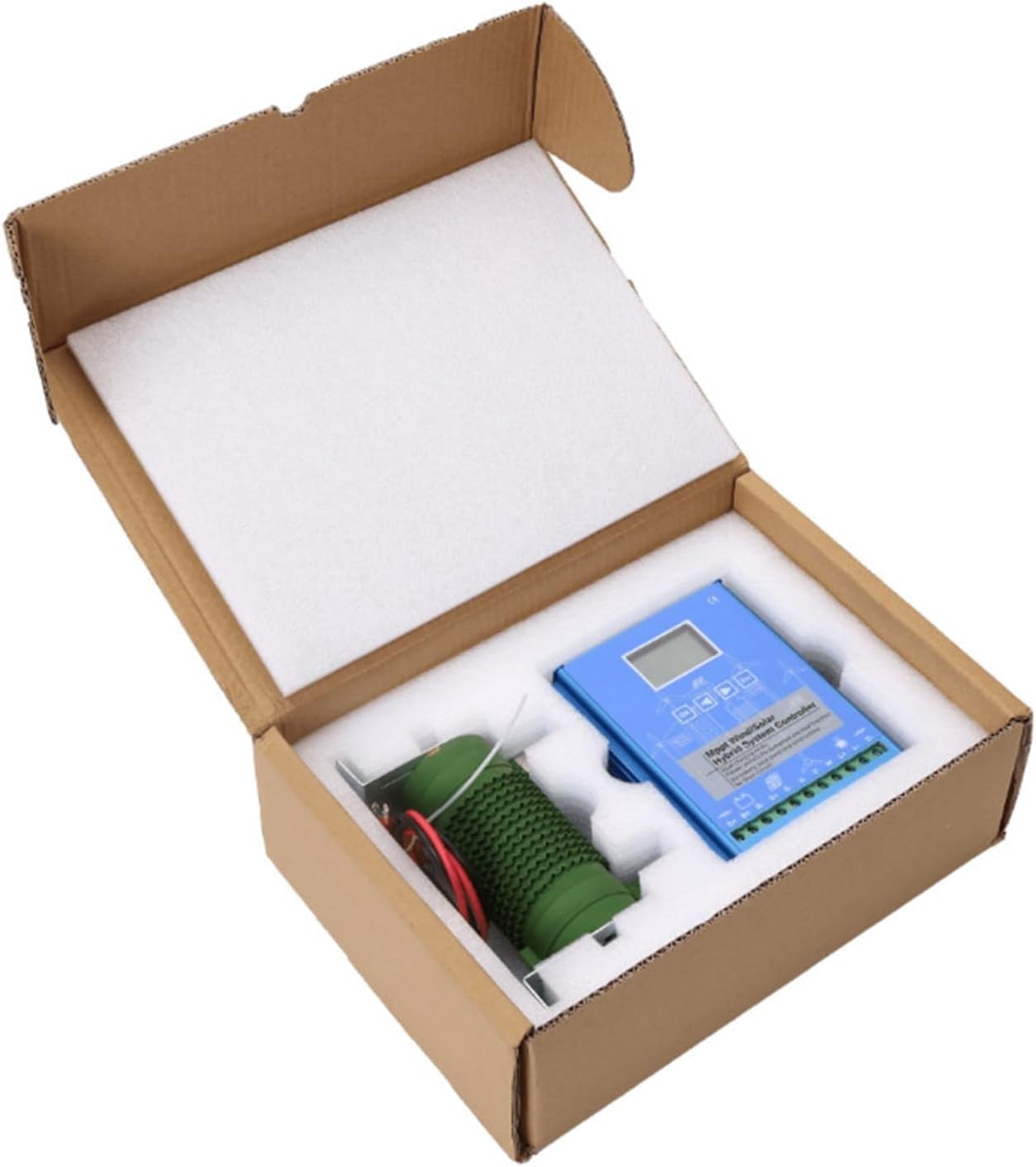 Product Description Unloading functionIn the high wind speed or the wind generator power beyond the scope of the battery capacity, the controller launches the unloading function by dump load resistor, protect the controller and battery. 1 pc controller1 pc dump load resistor1 pc operation Manual2 pcs MC4 wrench2 pcs resistor cableFeature1.Boost charge: Flexible independent step-up circuits. Wind turbine charging mode is MPPT and Solar panel charging mode is PWM. 2.Battery type: Lithium Battery can be connected with this controller. Inluding all other battery type. 3.Protection: Reversed charging Protection of solar, over charge voltage/under voltage & Over load voltage Protection, battery reverse connects and open circuit protection, Lightning Protection, etc.) The controller battery voltage is 12/24V/48V.Especially is wind turbine adopts booster MPPT technology which make charge continuous and efficiently even in low wind speed.It can connect DC Load with 3 working models.The cable entry is well made to connect. Make the system wiring is simple and easy to operate. Big&Clear DisplayThe new screen is bigger and clearer. Easy for you to browse in any angle. Four operation buttons, convenient for user to understand and handle. Updated Intelligent systemThe parameters will be set well automatically after connect battery. The Upgraded sofeware system can control voltage more stable to avoid burn battery. Good Heat DissipationAluminum profile not only sturdy and durable, but also with good heat dissipation performance. Which can make hybrid controller self-cooling by itself. Note:1. Correct connection sequence: 1) pls connect the wires between battery and controller 2) pls connect the wires between wind/solar panels and controller 2. Usable battery: This model is used for GEL ,lead-acid and lithium battery.