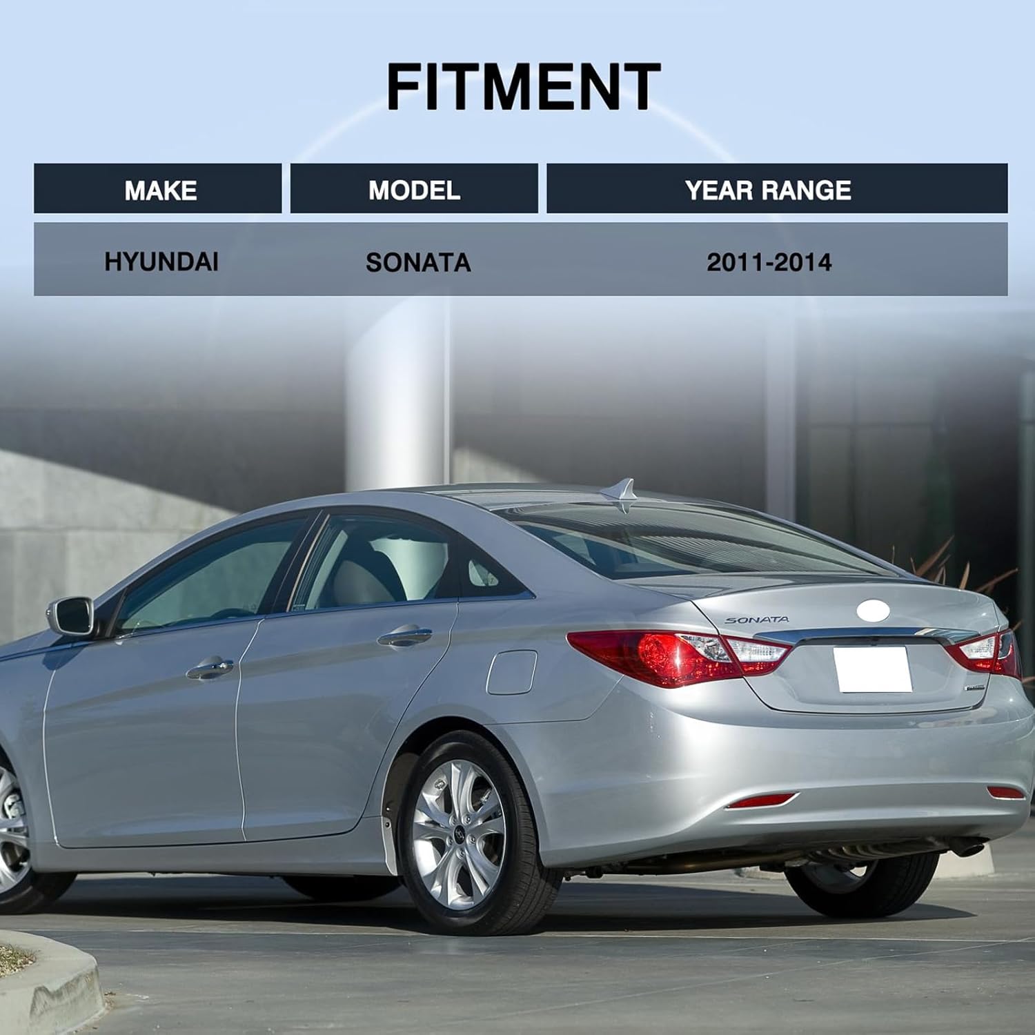 Fitment:[Not Compatible with Hybrid Models]for 2011-2013 Hyundai Sonata GLfor 2011-2012 Hyundai Sonata (submodel: 2.0T, 2.0T Limited)for 2011-2014 Hyundai Sonata (submodel: GLS, Limited, SE)Specification:Type: Tail Light AssemblyLighting Technology: HalogenPartslink Number: HY2804116Interchange Part Number: HNT1044AALS, HY2961260BLS, 924013Q000, P19040NSF, P19040, HY079B000LHousing Material: ABS PlasticLens Material: PolycarbonateHousing Color:ChromeLens Color: ClearLight Color: RedSide Marker Light:168Turn Signal Light: 1156ABrake Light: 2357Certification:DOT-Certified&SAE-CertifiedDust and Moisture Protection: YesPlacement on Vehicle: Left, Outer, RearFitment Type: Direct ReplacementAssembly Type: CompositePackage Included:1 x Left Outer Side Tail Light(Driver Side)