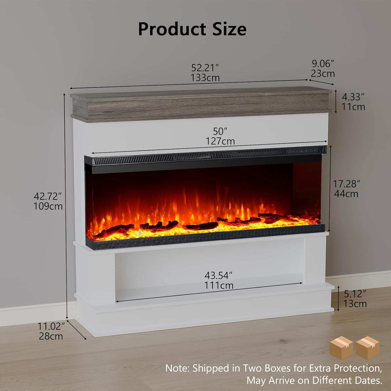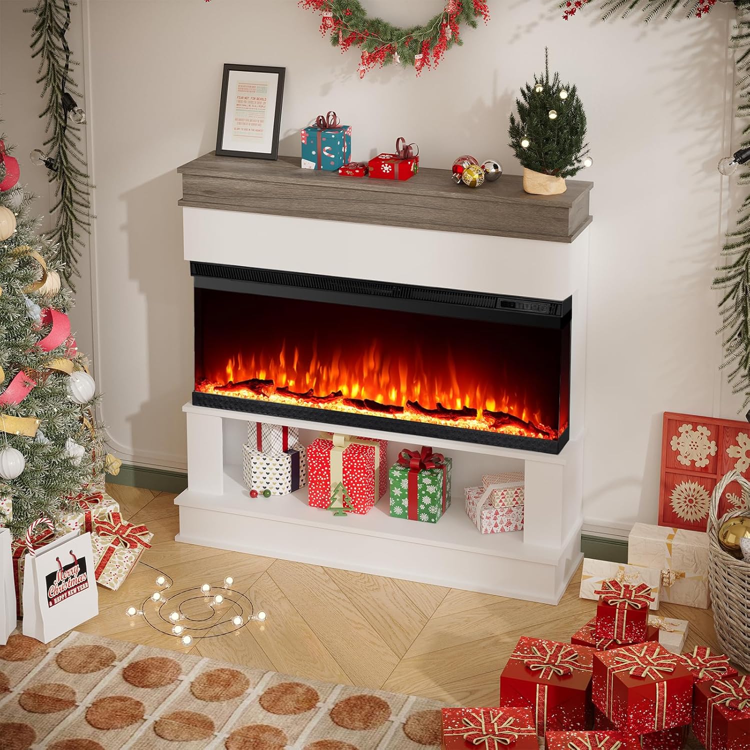 3-Sided View Electric Fireplace Insert - Freestanding Fireplace Minimalist Mantel - 12 Color Flame Effect - 1500/750 Watt Heater - Remote Control - Log & Crystals