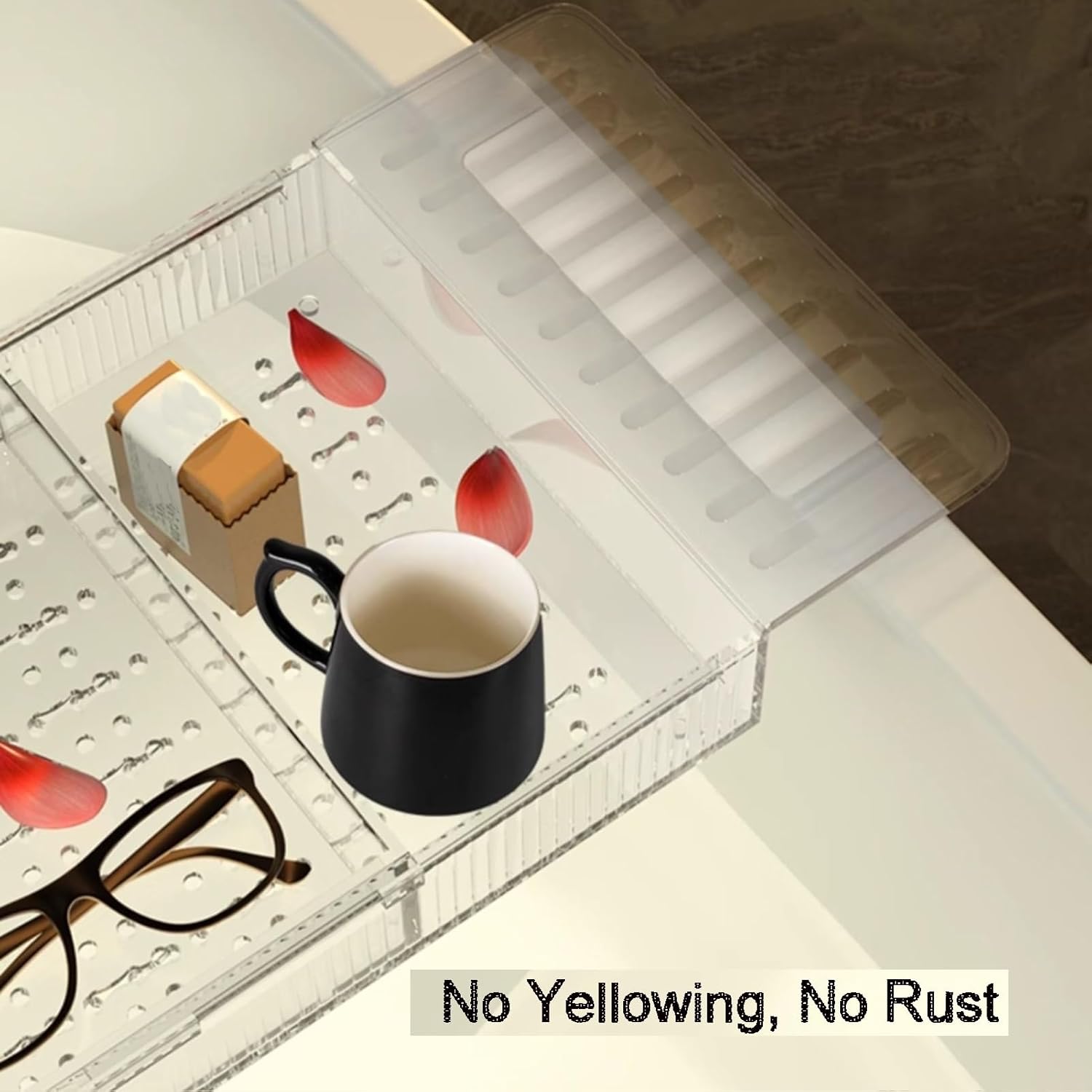 Product DescriptionThis organizer fits most standard bathtubs. We proudly present this bathroom storage tray, featuring a natural finish and durable finish, making it an ideal addition to your home.Features:Name: Foldable Bathtub Tray / Bathtub Tray / Bathtub Shelf / Bathroom Accessories / Bathtub Drain Tray / Bathtub Tray OrganizerMade of: PlasticProduct Dimensions: As shownColor: As shownApplicable Place: BathroomFunction: Stores various bath suppliesPackaging:1 x Bathtub Storage Tray, 1 AccessoryPlease Note:1. Actual color may vary slightly due to monitor and lighting conditions. Measurements may vary slightly by 1-2 cm.2. Items other than the bathtub storage tray are for stage props only.