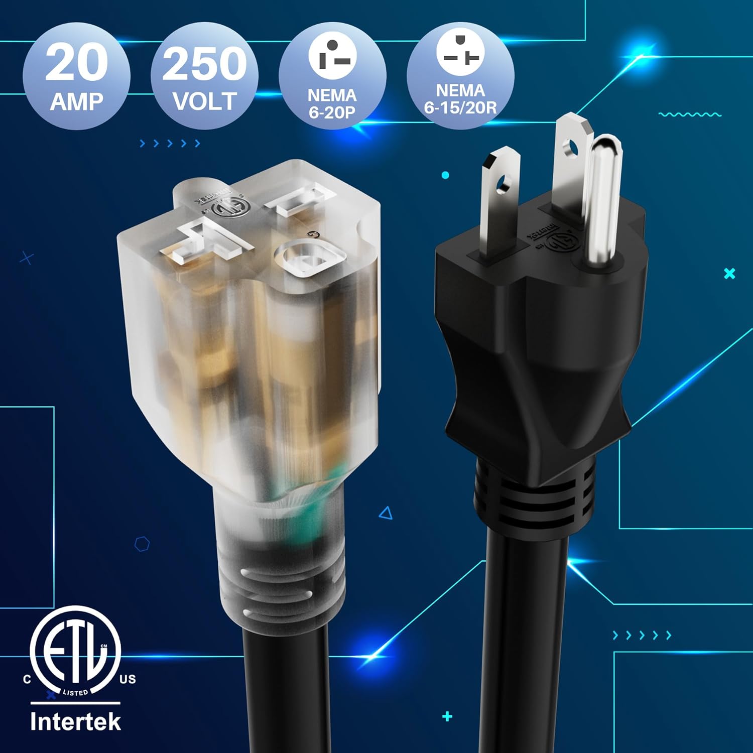 NEMA 6-20P to 6-20R/6-15R Power Cord