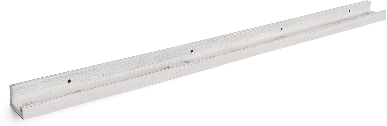 You can Organize Your Small Space with These Rustic Shelf Wall Mountable Display Ledge and Create Farmhouse Décor in Budget Complete the decor of your home by adding finishing touches to your walls. Empty walls make a home decoration look incomplete, so complete your decor like a professional and showcase your talents in designing. Look through decorating and design ideas on Pinterest and replicate the high-end designs you see for a fraction of the cost. Perfect hanging wall decor to display just about anything, with reasonable price, you can use them as dorm shelf to store memorable and collectible items You can create a wall of determination by showcasing your photos, awards, trophies, collectible vinyl records, comic books and other things. Great for teen girl room decor Great as kitchen shelves wall mount in your kitchen, above the toilet storage in bathroom, above bed shelf in bedroom, nursery or kid’s room as well. It can house all your toiletry, perfumes, cookbooks, spices or pantry essentials. The shelves make a great gift for a housewarming or Christmas, make someone happy for a holiday or special occasion. Specifications: Material: Solid Wood Color: Washed White Product Measurements: L 60" D 3 3/8" H 2 1/4" Package Content Information: 1 60 Inch Wood Wall Mounted Ledges and Mounting Hardware
