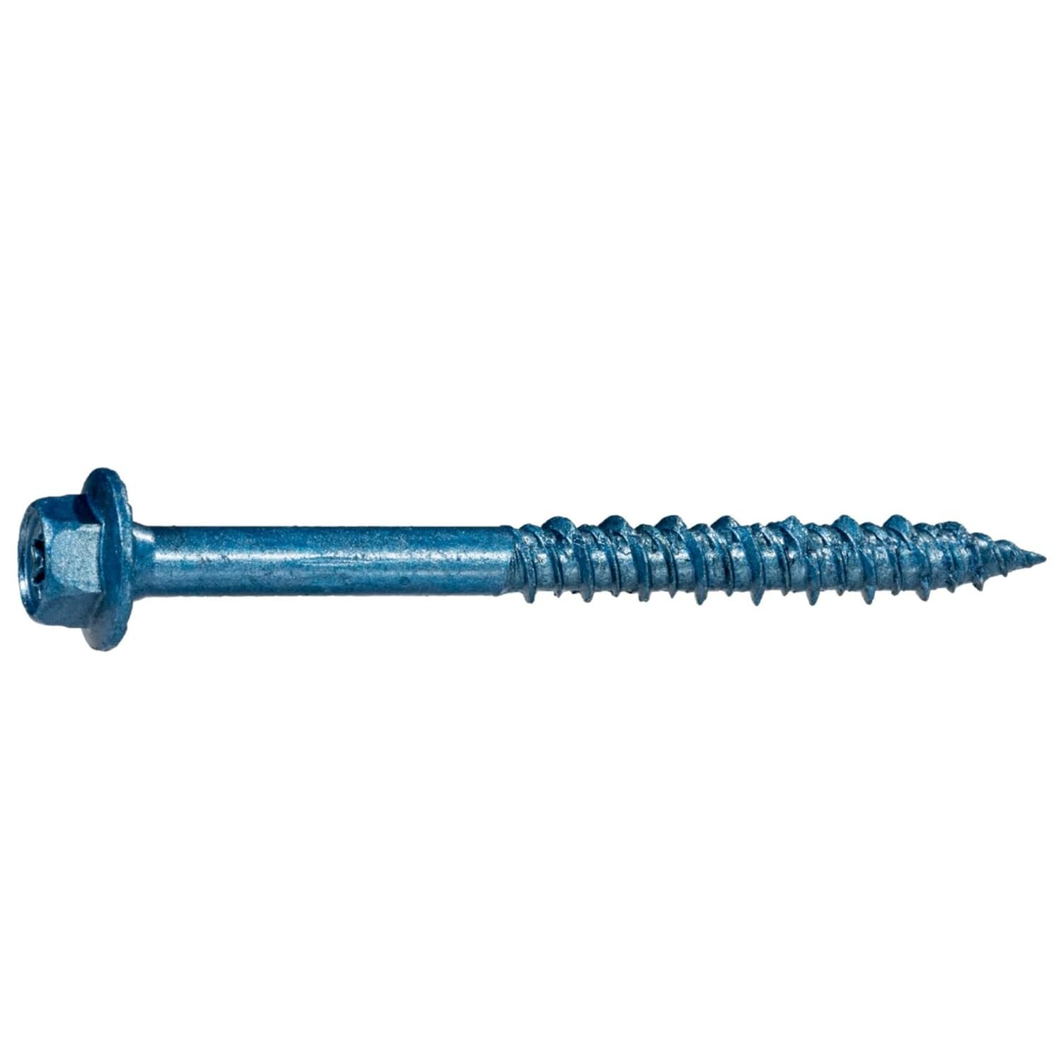 TorqueMaster masonry screws are designed with heavy duty masonry anchoring applications in mind. Manufactured with hardened alloy steel for maximum strength and coated with a Blue Ruspert coating for superior rust resistance, TorqueMaster masonry screws are suitable for both interior and exterior use, as well as use in ACQ treated lumber. The star drive eliminates cam-out, while serrated threads help cut through the pre-drilled hole for a strong hold. The appropriate driver and drill bit are included in each box of TorqueMaster screws.