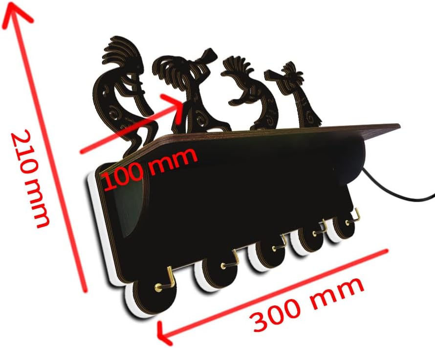 This entryway organizer is a great platform to organize your keys, mail, or anything else you need, as you head out the door, as well as an artistic piece for decor.A rustic style hanger rack display shelf, will not just bring you comfort but it will also fit perfectly to your space. You will have enough space to put your small objects and hang your clothes at the same time.A wall hook with an eye catching LED lighting sign is something just perfect for your wall. Decorating with this magnificent LED lighted wall art will allow you to express your unique style, design, and flair on the walls in your home, ranch, cabin, lodge, or cottage.Feature:Material: Double nature wood +metal hanger+ LED lightSize: 30cm/12inch length, 3.9*12inch wide top shelf, 180cm/70inch USB wire lengthLED Light: 7 color changing LED light include purple, red, yellow, green , white, blue and cyan powered by USB.Its energy efficient LED light has a long lasting lifetime of more than 50,000 hours.Wall Hanging: There are two holes back on the wooden, wide back slot ensures easy installation, hang on any nail, screw or small wall hook.How to Installation:1. You will get wooden pieces*4, gold screw hooks*52. Insert two small black pieces of wooden into rectangular board to finish display shelf, and then insert the display shelf into the gap of other board.3. Rotate the five gold screw hooks mounting into corresponding holes .There are two holes back on wood, wide back slot ensures easy hanging, hanging on any nail.(not included)4. Finished.