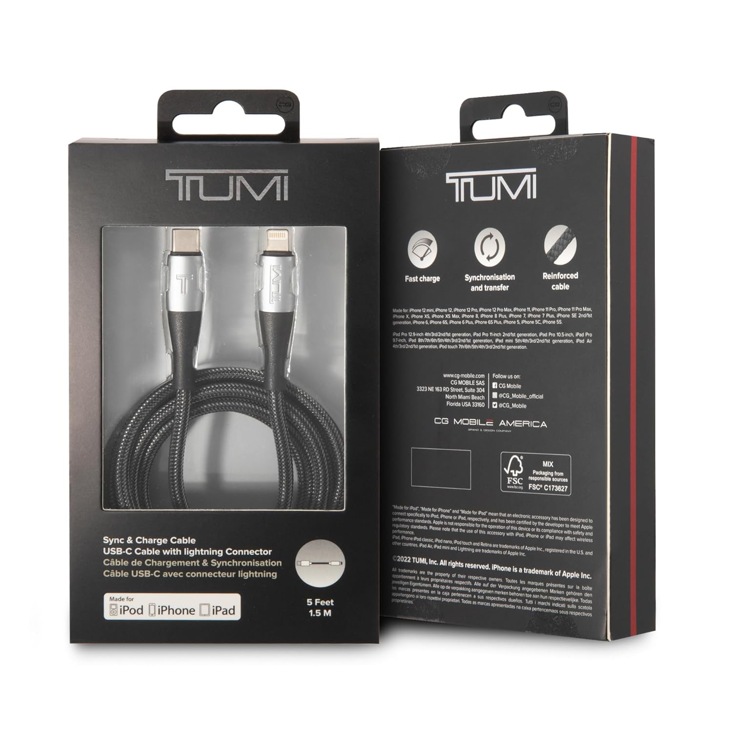 Travel comfortably and in style with TUMI's USB-C to Lightning Connector cable, crafted to meet the needs of the modern tech-savvy user. Whether you're an iPhone aficionado or an iPad enthusiast, this cable is the epitome of charging efficiency and data synchronization.Our USB-C to Lightning Connector cable is tailored to be the perfect companion for your devices. It's a charger that reduces downtime, ensuring your iPhone, iPad, iPod, or AirPods are powered up and ready when you are. The sleek 5-foot cable provides ample length to connect your device to the power source, offering convenience without compromise. As a charger cord, it stands out with its reinforced knit design, which not only adds durability but also a touch of elegance to your tech collection.TUMI's dedication to quality is evident in every detail. The iphone charging cord is built to last, featuring materials that withstand daily wear and tear. It's a charging cord that doubles as a sync cable, allowing you to transfer your photos, music, and data with ease.This charging cord is covered by TUMI's Limited 2 Year Product Warranty.We design for you. Our commitment to exceptional quality and high performing products have made TUMI the leading lifestyle and accessories brand that travelers depend on consistently. This is what we call the TUMI Difference.We are innovative by nature and sustainable by choice. TUMI products protect your belongings when you travel. Our planet is an astonishing place, and we believe it's our responsibility to preserve it for travelers of the future. By putting excellence and quality first, we are committed to creating quality TUMI products that have lifelong purpose, are supported by our rigorous testing standards, use recycled materials and our global repair network.